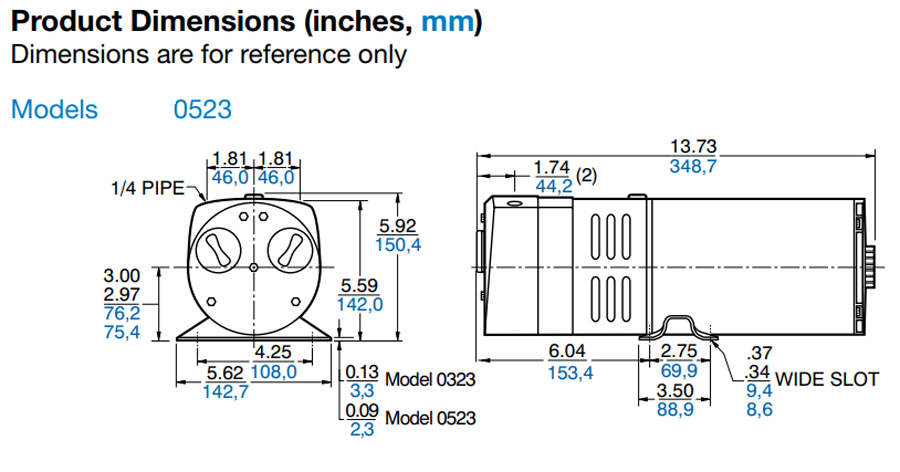 ปั๊มสุญญากาศ GAST รุ่น 0523 Series (VACUUM PUMP GAST) เป็นปั๊มสุญญากาศ ระบบมอเตอร์ต่อตรง (Motor Mounted) มีให้เลือกทั้งแบบ ไม่ใช้น้ำมัน (Oil Free Rotary Vane) คือ รุ่น 0523-101Q-SG588DX และที่ใช้น้ำมัน (Lubricated) คือรุ่น 0523-V4-SG588DX